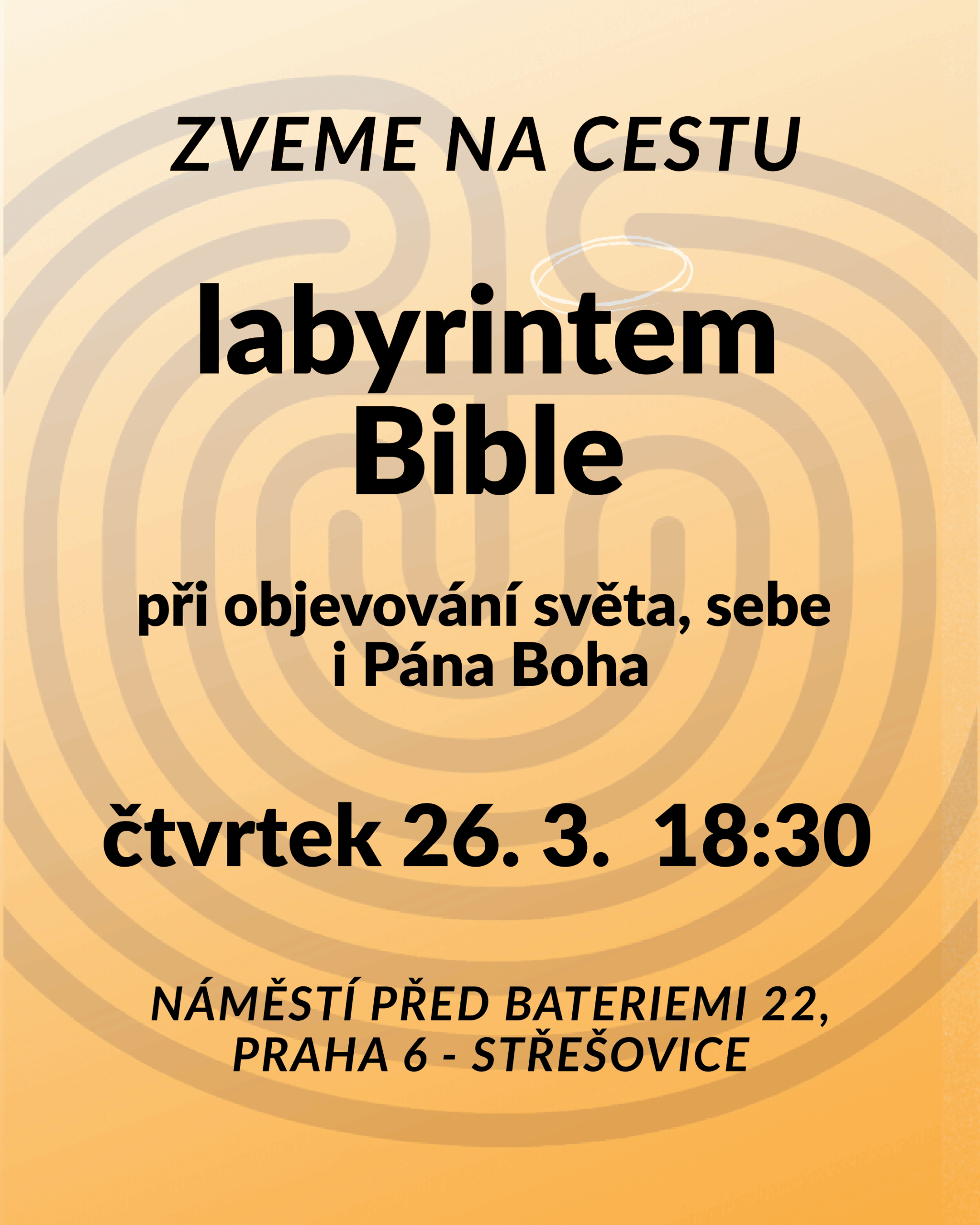 Srdečně vás zveme na další biblickou hodinu s názvem „Labyrintem Bible – při objevování světa, sebe i Pána Boha“, která se uskuteční tento čtvrtek 23. ledna od 18:30 ve sborové místnosti.